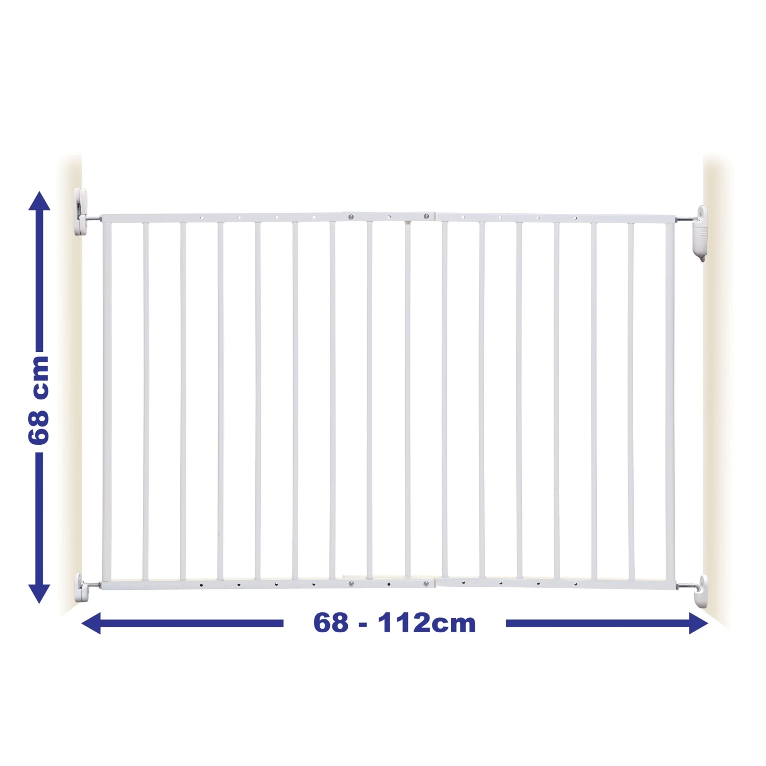 Avec une ouverture de 68-112cm et une hauteur de 68cm, elle est idéale pour une utilisation en haut et en bas des escaliers. Cette barrière à vis est livrée avec une largeur réglable et sans barre de base, ce qui lui confère une sécurité supplémentaire lorsqu’elle est utilisée en haut ou en bas des escaliers.