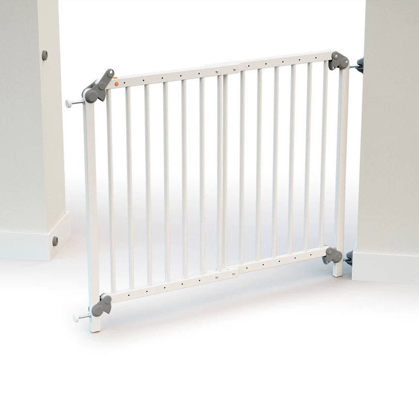 Une barrière de sécurité extensible qui pourra s’adapter aux ouvertures allant de 73 à 110 cm. Sécurité et ergonomie garanties grâce au système d’ouverture et de fermeture d’une seule main. Utilisation ergonomique et sécurisée : ouverture et fermeture d’une seule main. Installation amovible ou portillon. Produit sans peinture ni vernis : prêt à peindre et écologique.