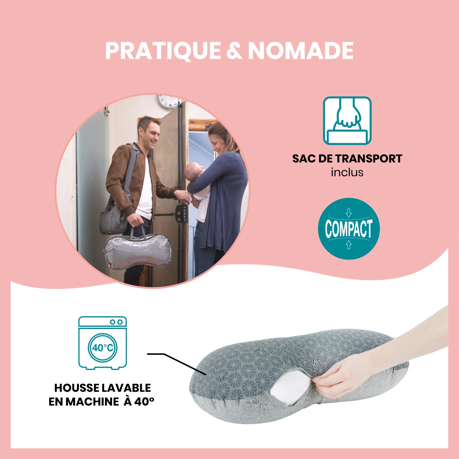 - Evolutif : coussin utilisable pour le confort de la future maman et pour les premiers mois de bébé
