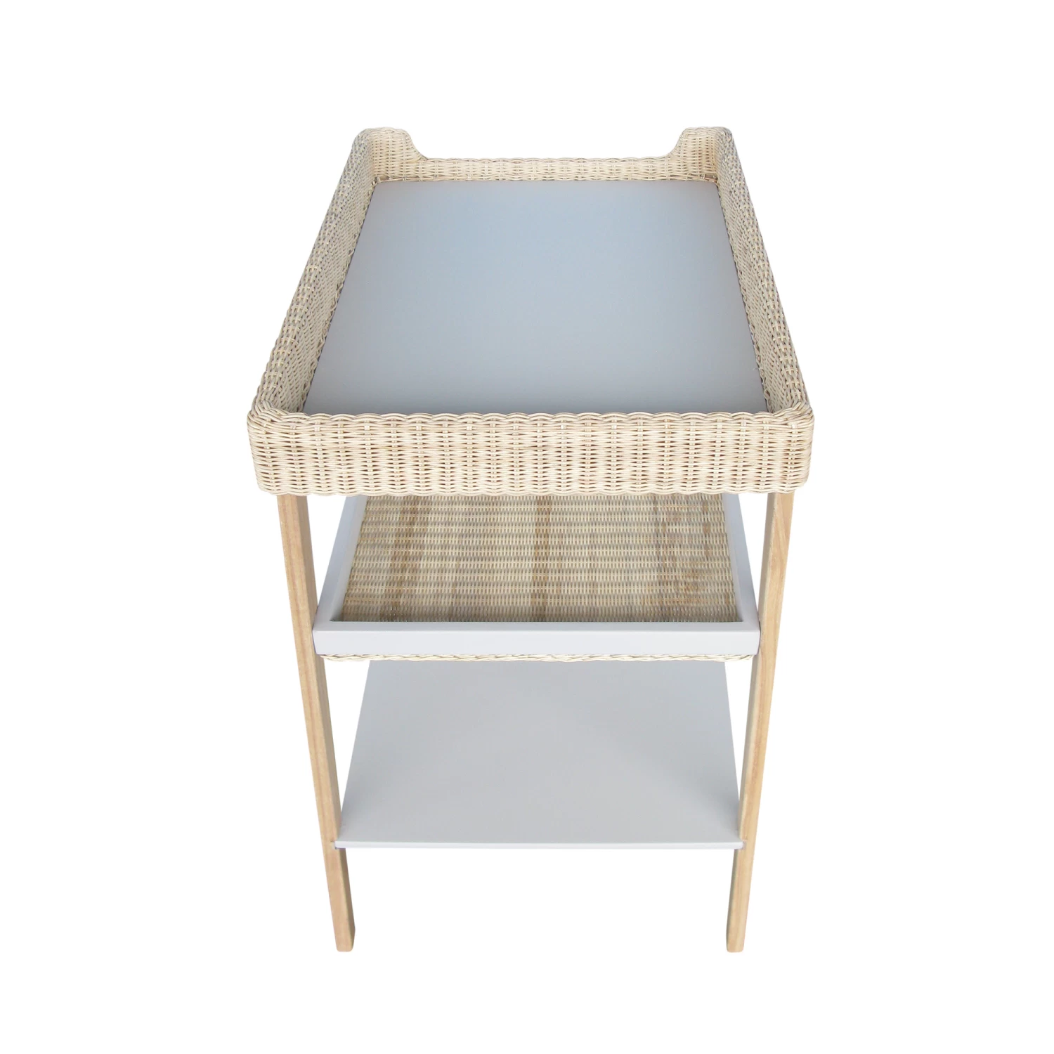 Assortie au reste de la chambre Marélia, cette ravissante table à langer possède deux étagères sous le plateau. Les montants sont en bois massif, les planches en MDF et le contour du plan à langer en rotin tressé naturel. Son plan à langer accueille un matelas de 52 x 75 cm (non fourni).