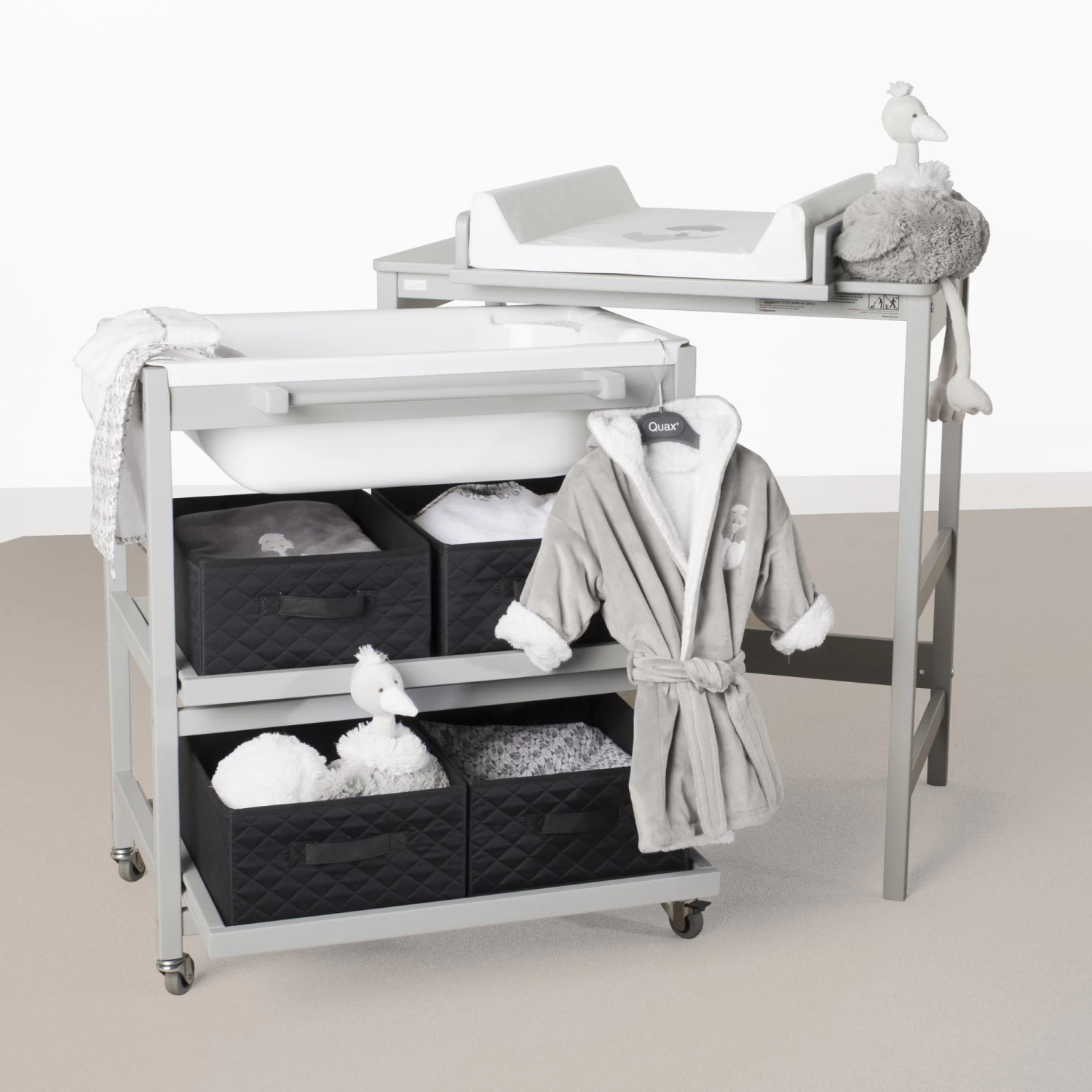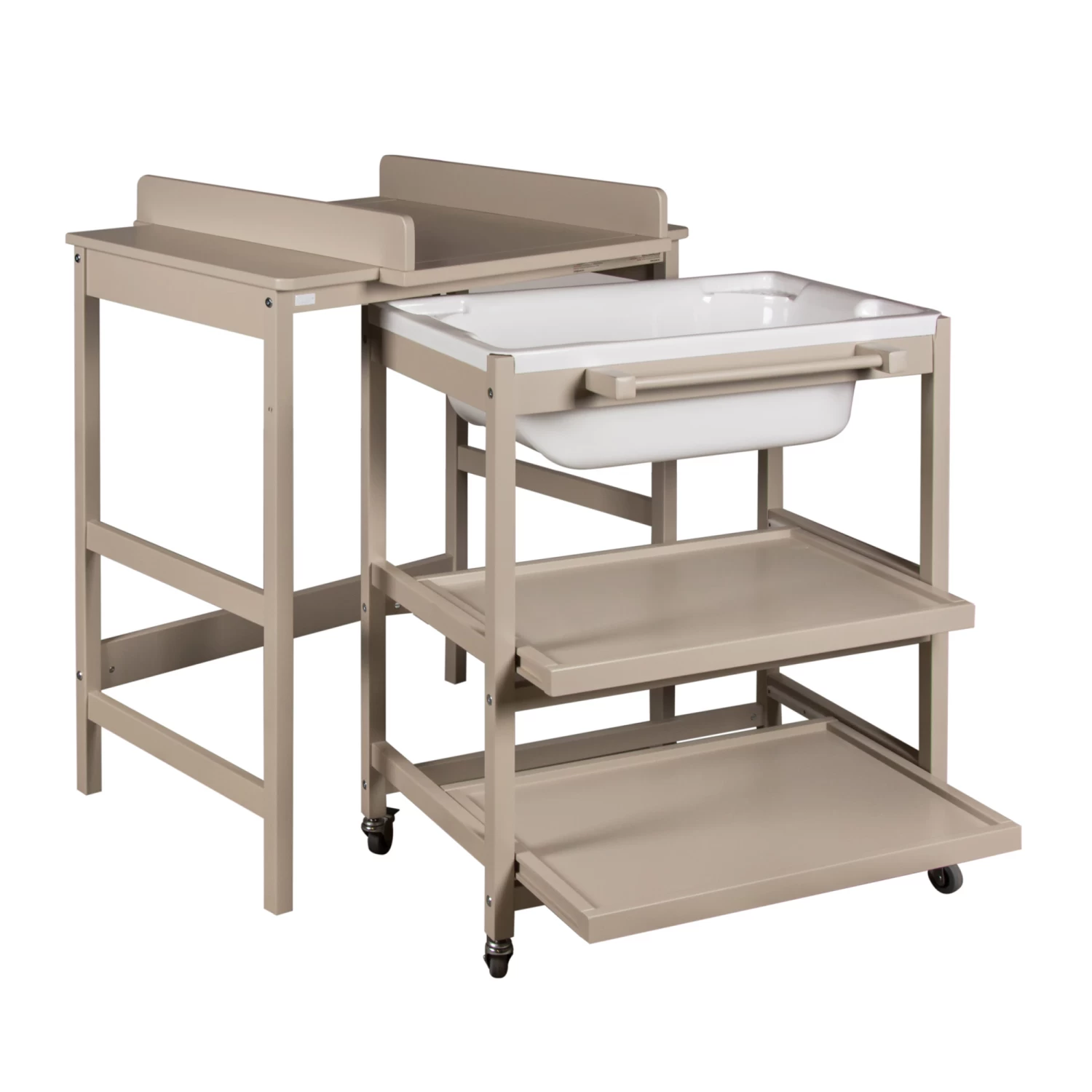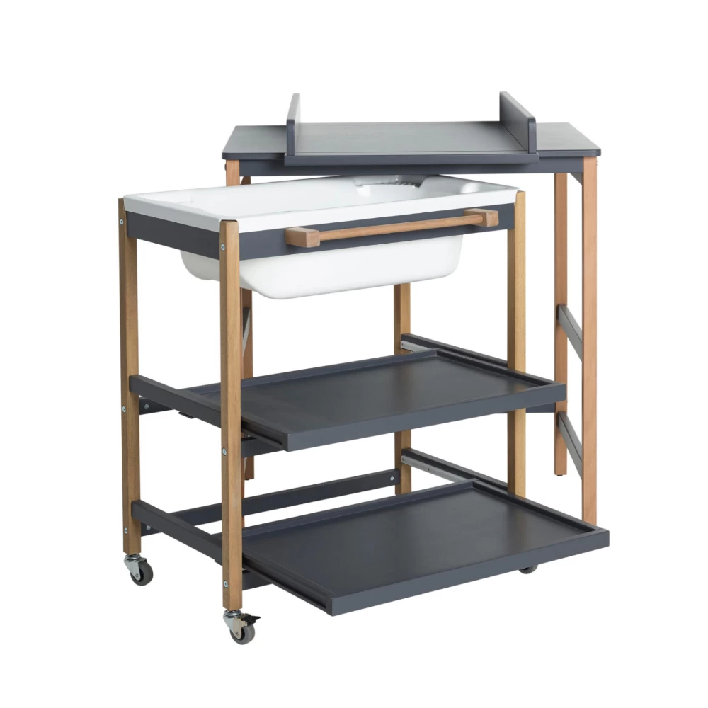 Très pratique, en un seul meuble la table à langer, la baignoire et des rangements.