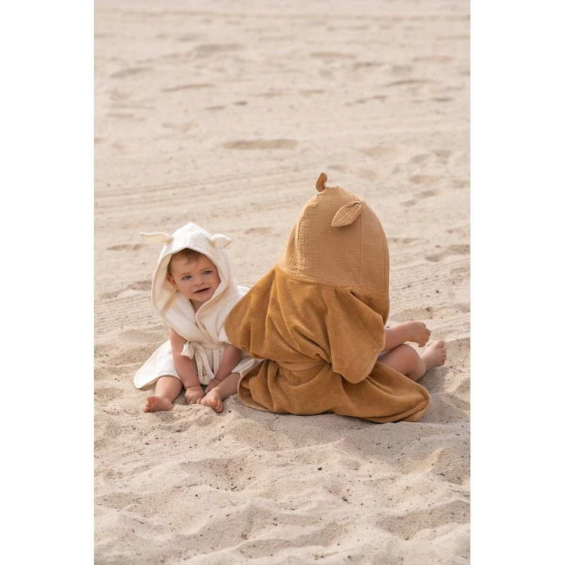 Un adorable peignoir en éponge bambou avec capuche et ceinture en double gaze de coton ton sur ton. Petites oreilles de lapin sur la capuche. Ce peignoir s’ouvre entièrement sur le devant pour y déposer bébé et l’envelopper de douceur après le bain. Dès que bébé s’assoit ou se met debout, le peignoir reste bien en place grâce à sa ceinture à nouer.