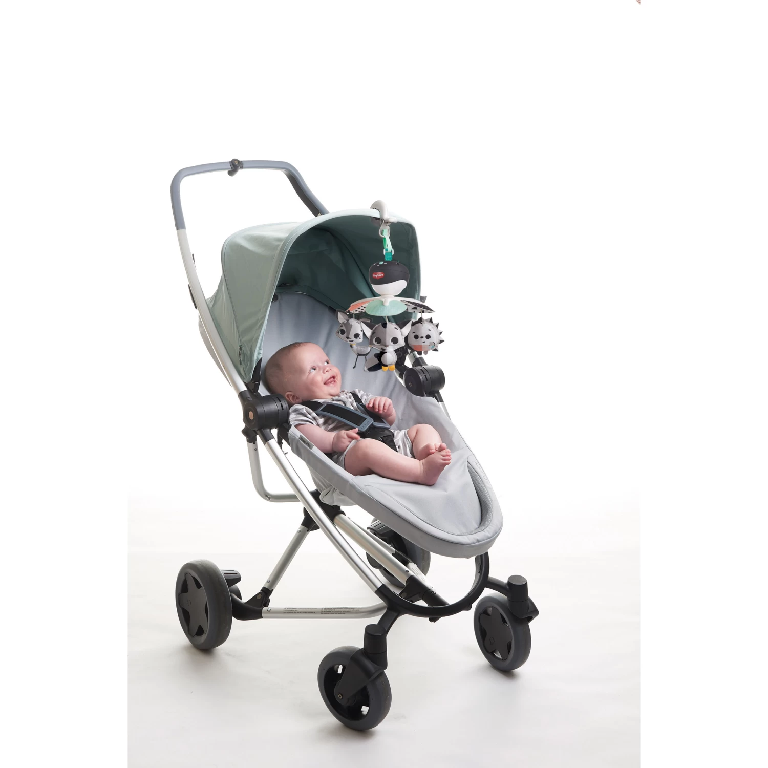 - Fixez le mobile Take-Along à la poussette, au parc, au lit pliant ou au siège auto pour ne jamais s’ennuyer.