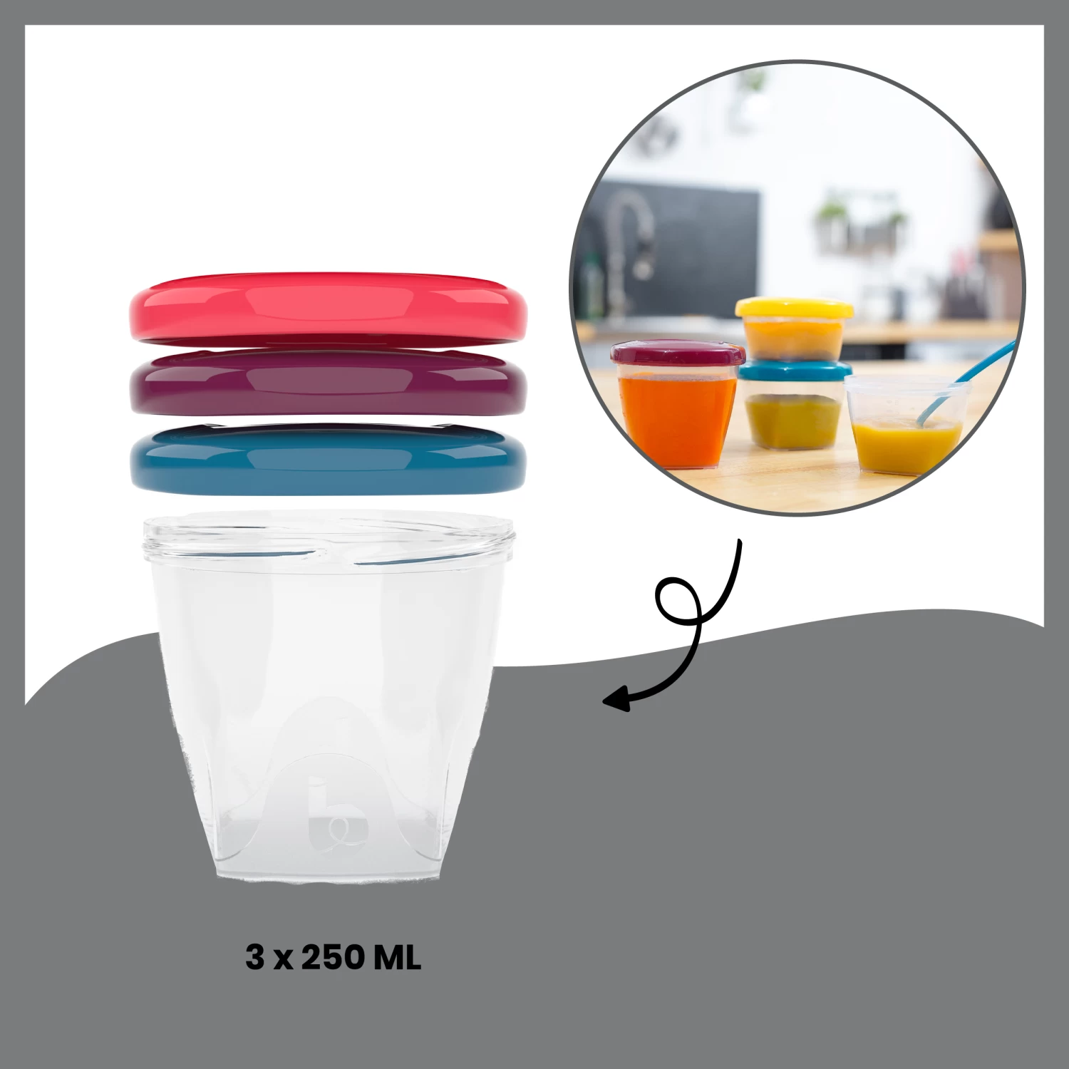 Pour la conservation et la dégustation, les Babybols sont parfaits pour stocker et même réchauffer les préparations pour bébé. Garantis sans BPA, les Babybols sont en polypropylène. Une surface réinscriptible permet de noter la recette conservée. En plus, leur graduation assure un dosage précis. Grâce à leur couvercle hermétique, vous pouvez les transporter partout en toute sécurité les repas de votre tout petit. Très pratiques, ils sont stérilisables à froid. Vous pouvez également les mettre au congélateur, au micro-ondes et au lave-vaisselle.
