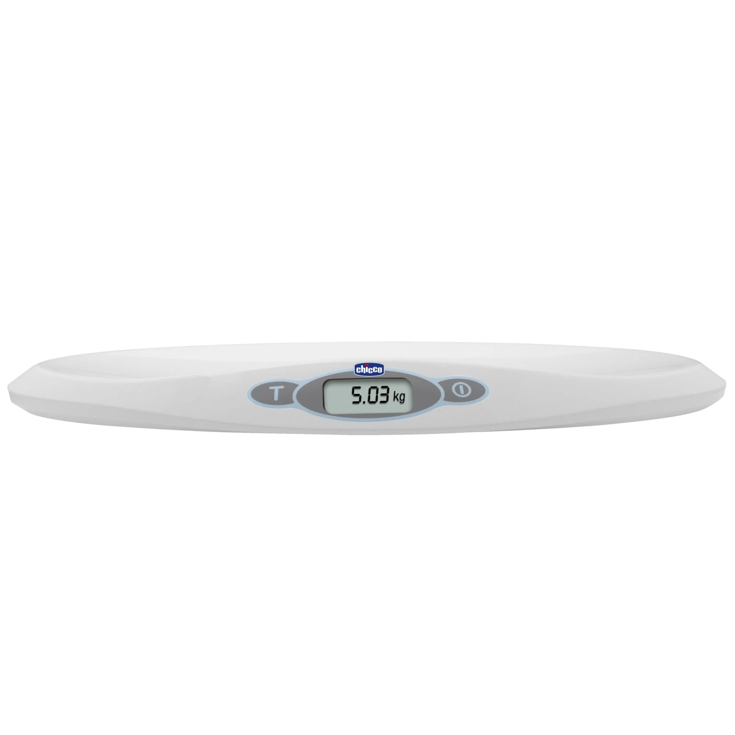 Pèse-bébé électronique à la forme ergonomique et compacte. Portée de 30 g à 20 kg avec graduation précise tous les 10 g.
