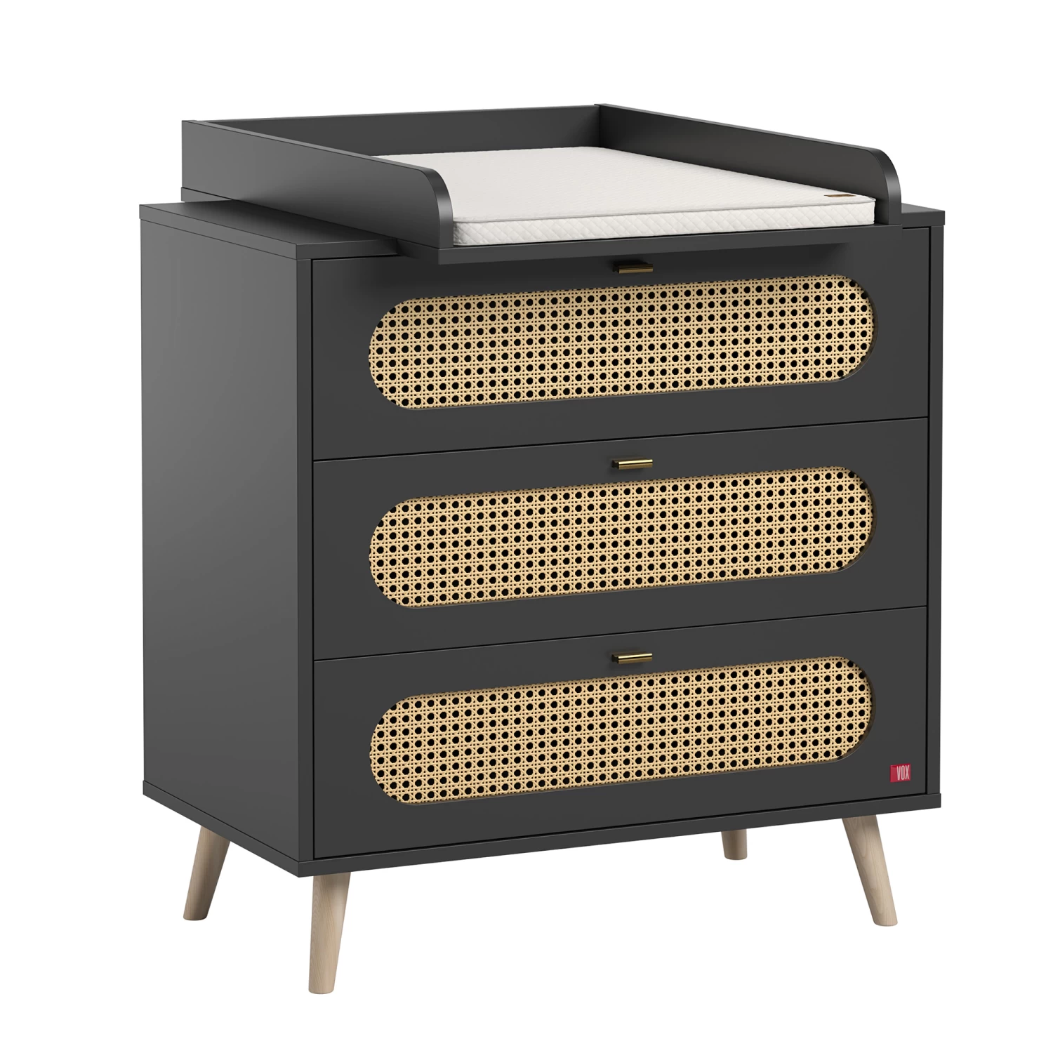 - Plan à langer : se fixe et se retire en fonction de vos besoins – rebords de protection