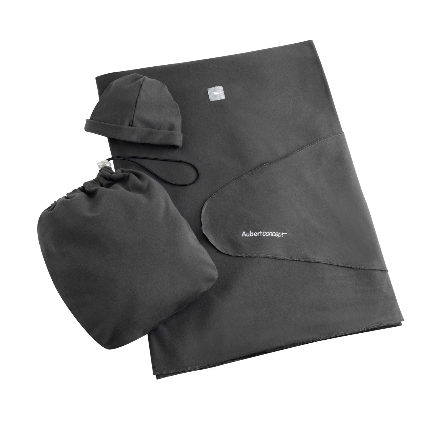 L’écharpe porte-bébé avec bonnet assorti et sac de transport inclus.
