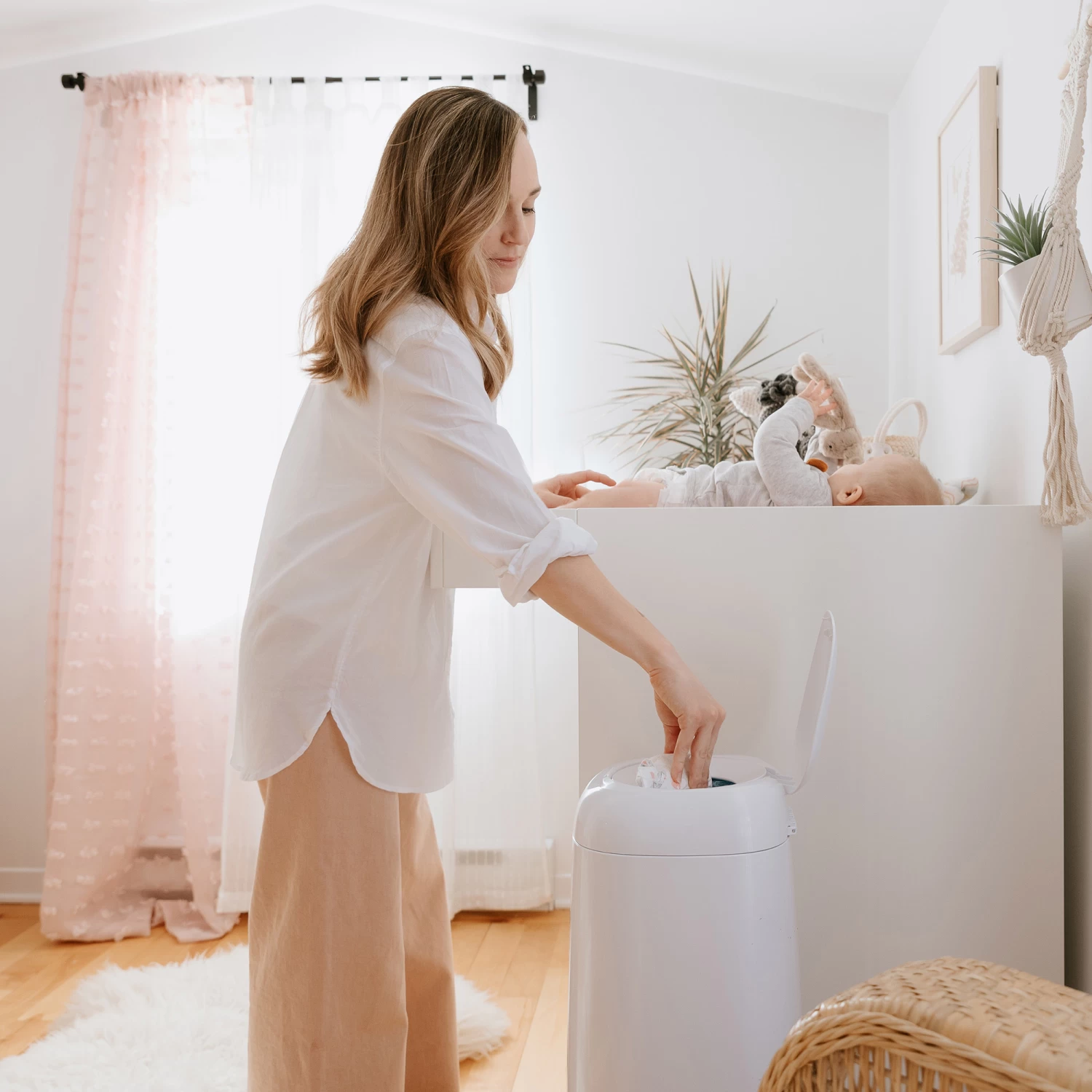 Le système d’élimination des couches souillées d’Angelcare® Dress Up XL, la poubelle au concept innovant, avec son design qui peut être modifié pour convenir à n’importe quel décor de chambre de bébé, avec les housses de tissu accessoires, a été améliorée et, est maintenant 25% plus haute que la poubelle Angelcare® Dress Up standard.