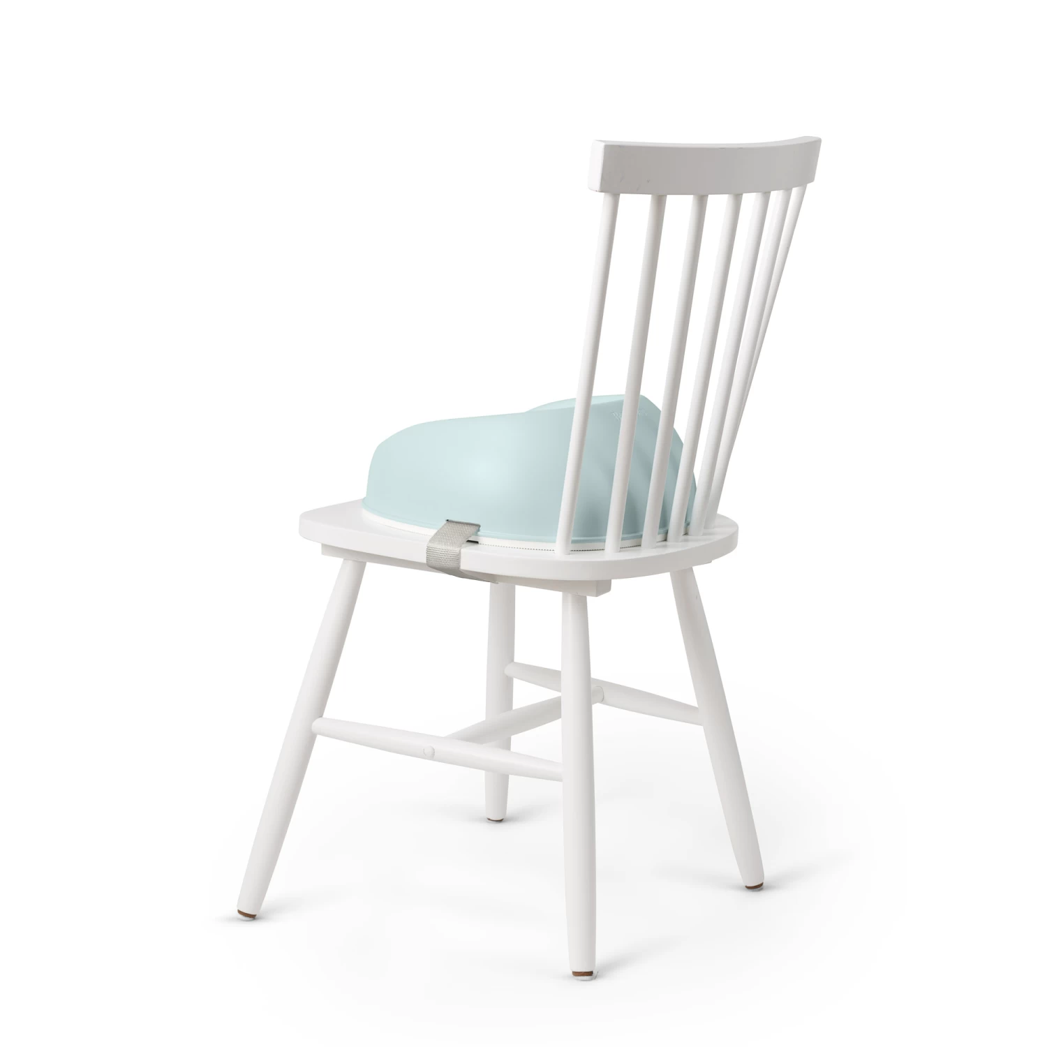 La base caoutchoutée sous le rehausseur le maintient fermement sur la chaise.