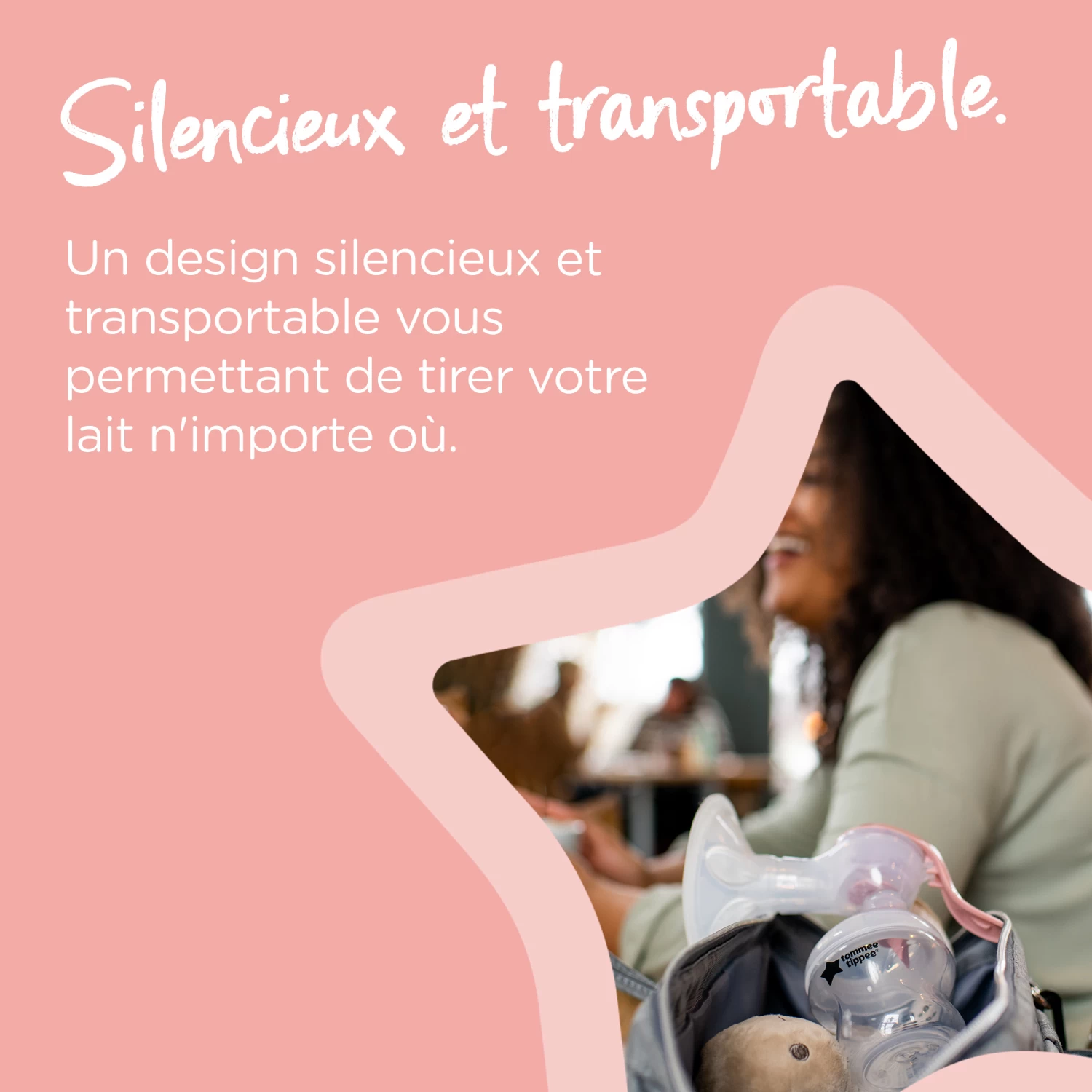 - Tire-lait manuel : Léger et discret, ce tire-lait est doté d’une téterelle en silicone douce idéal pour votre peau. Sa poignée ergonomique vous permet de tirer votre lait avec une seule main