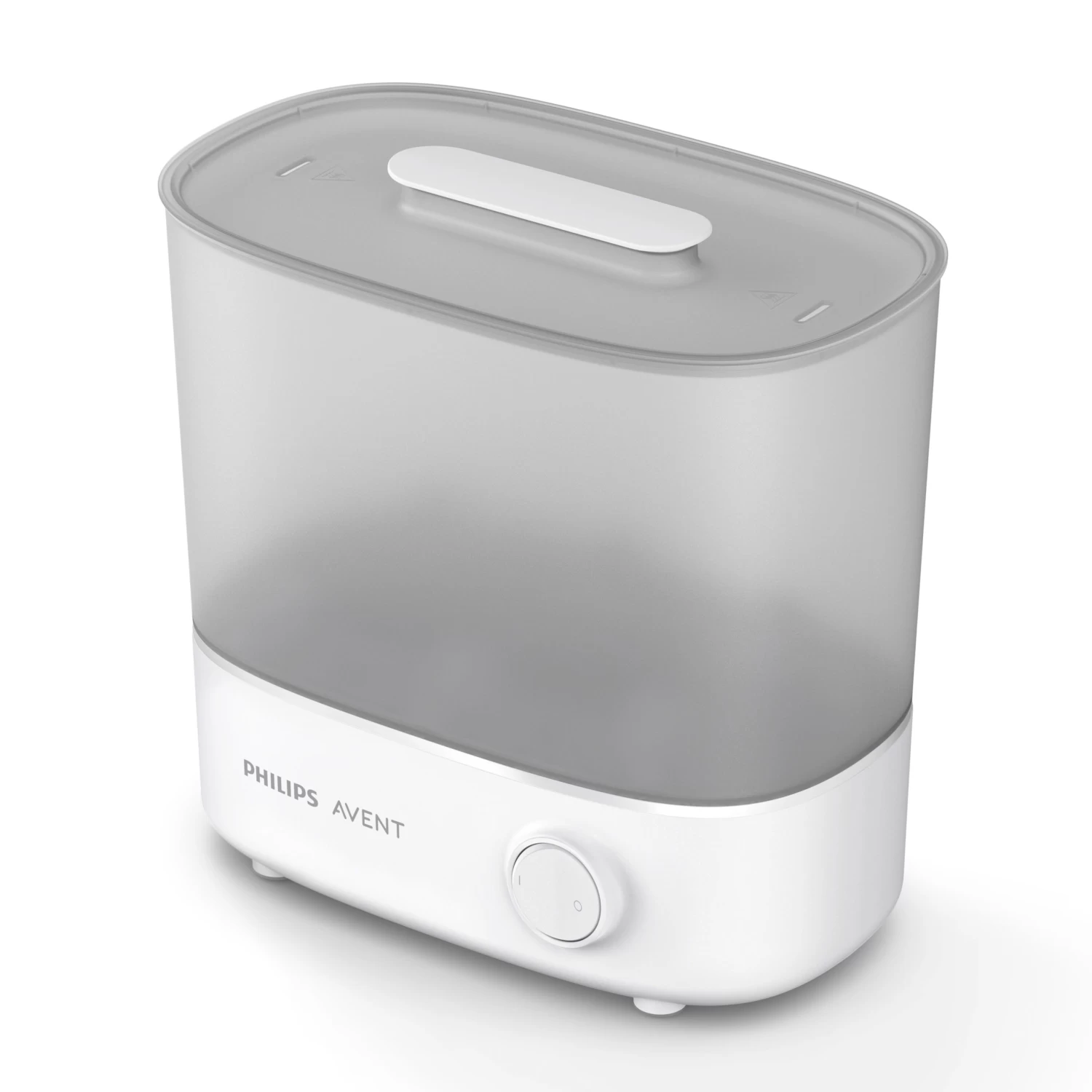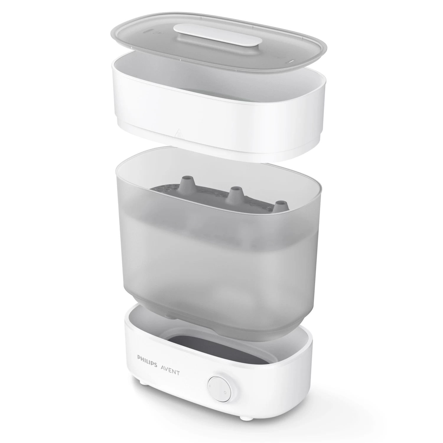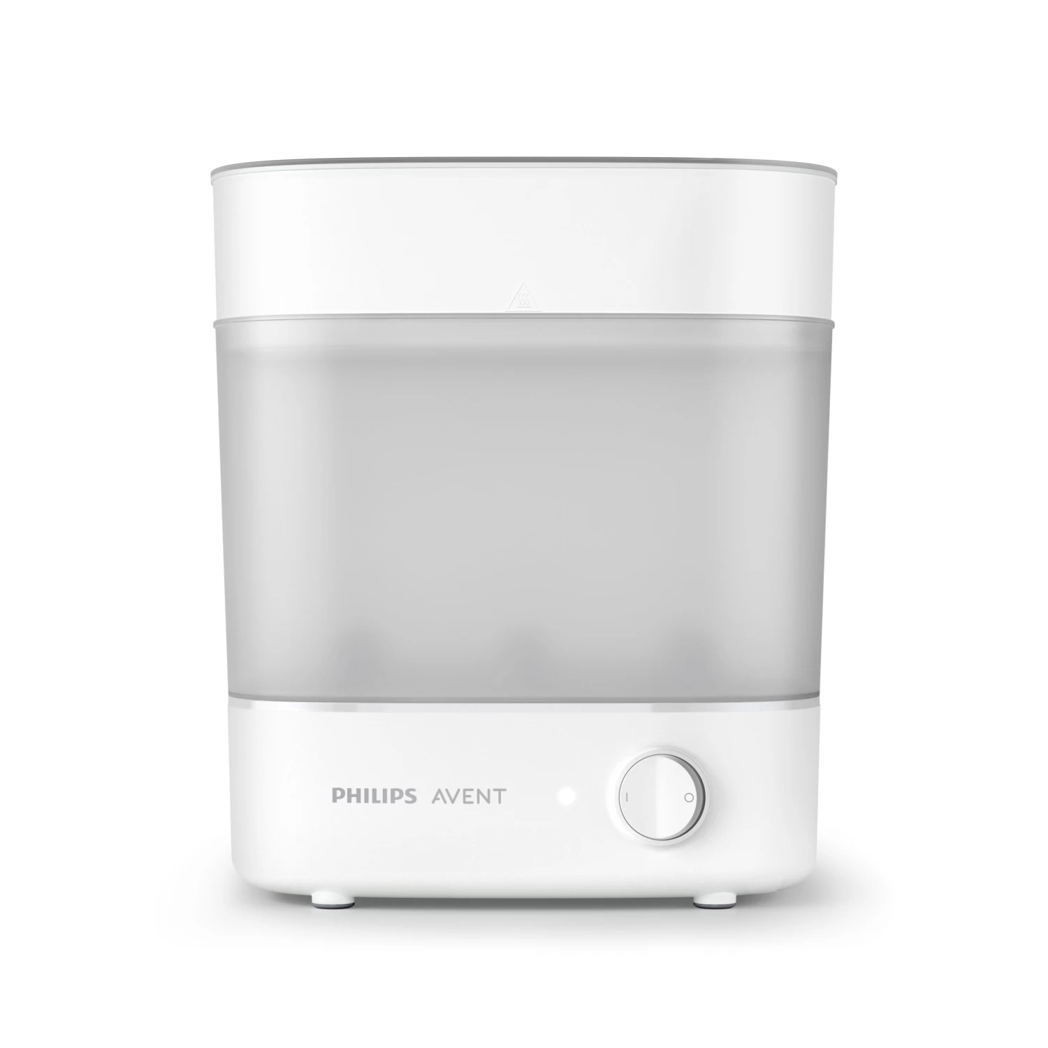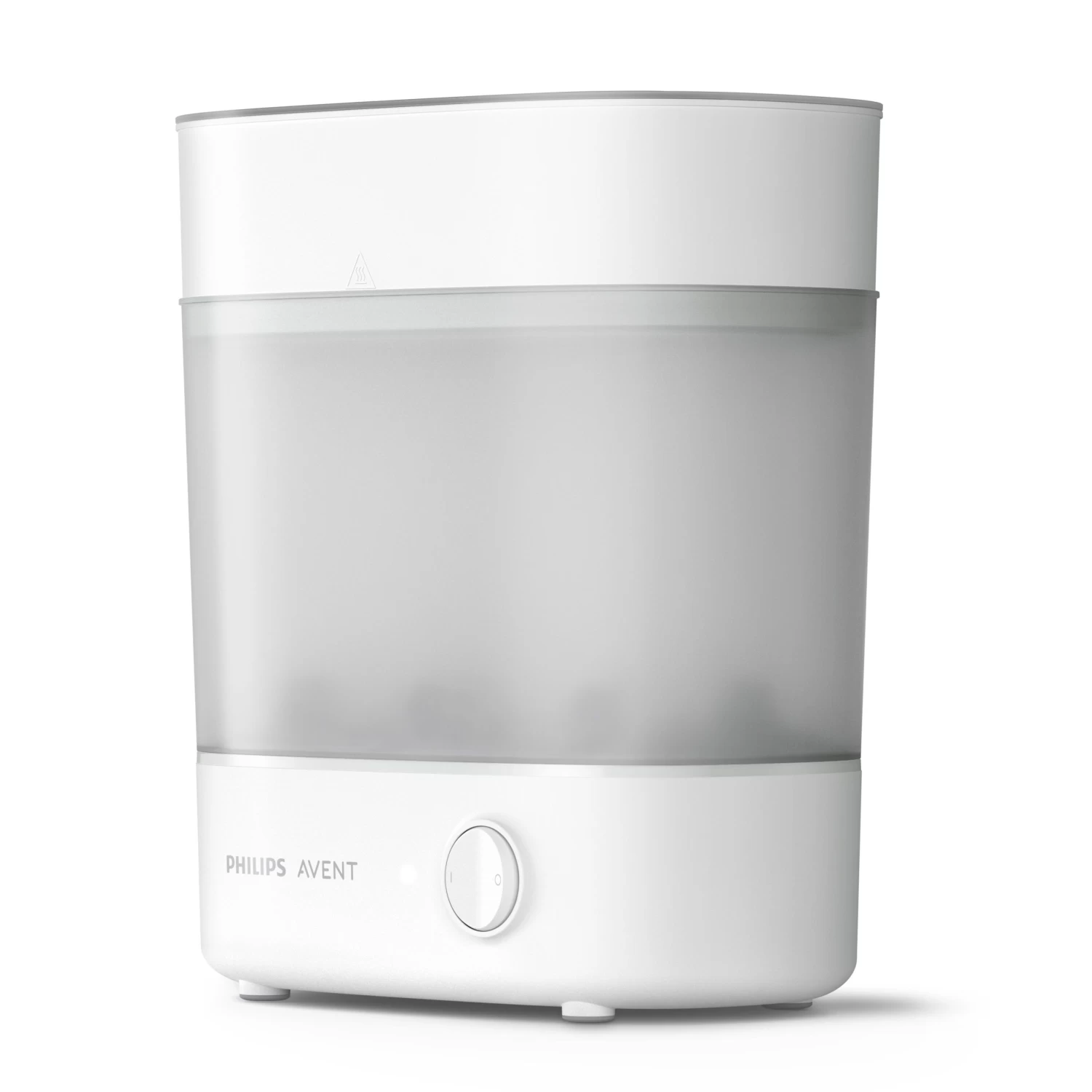 Stérilisez et rangez avec le stérilisateur électrique vapeur 4 en 1 de Philips Avent. Stérilisez jusqu’à six biberons et leurs accessoires en 10 minutes seulement. Le stérilisateur avancé de biberons, mince mais spacieux, élimine 99,9 % des microbes* rapidement et efficacement pour que vous ayez l’esprit tranquille à chaque tétée.