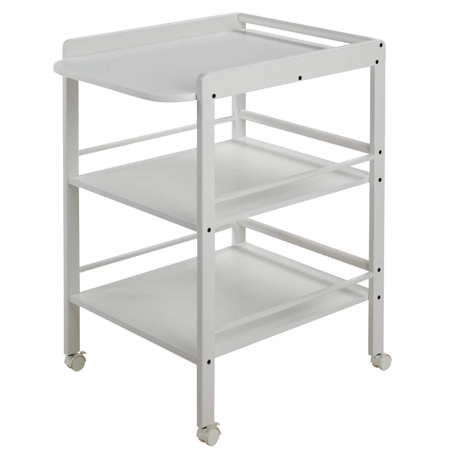 - 2 étagères de rangement offrent beaucoup de place à des produits de soins, des couches, …
