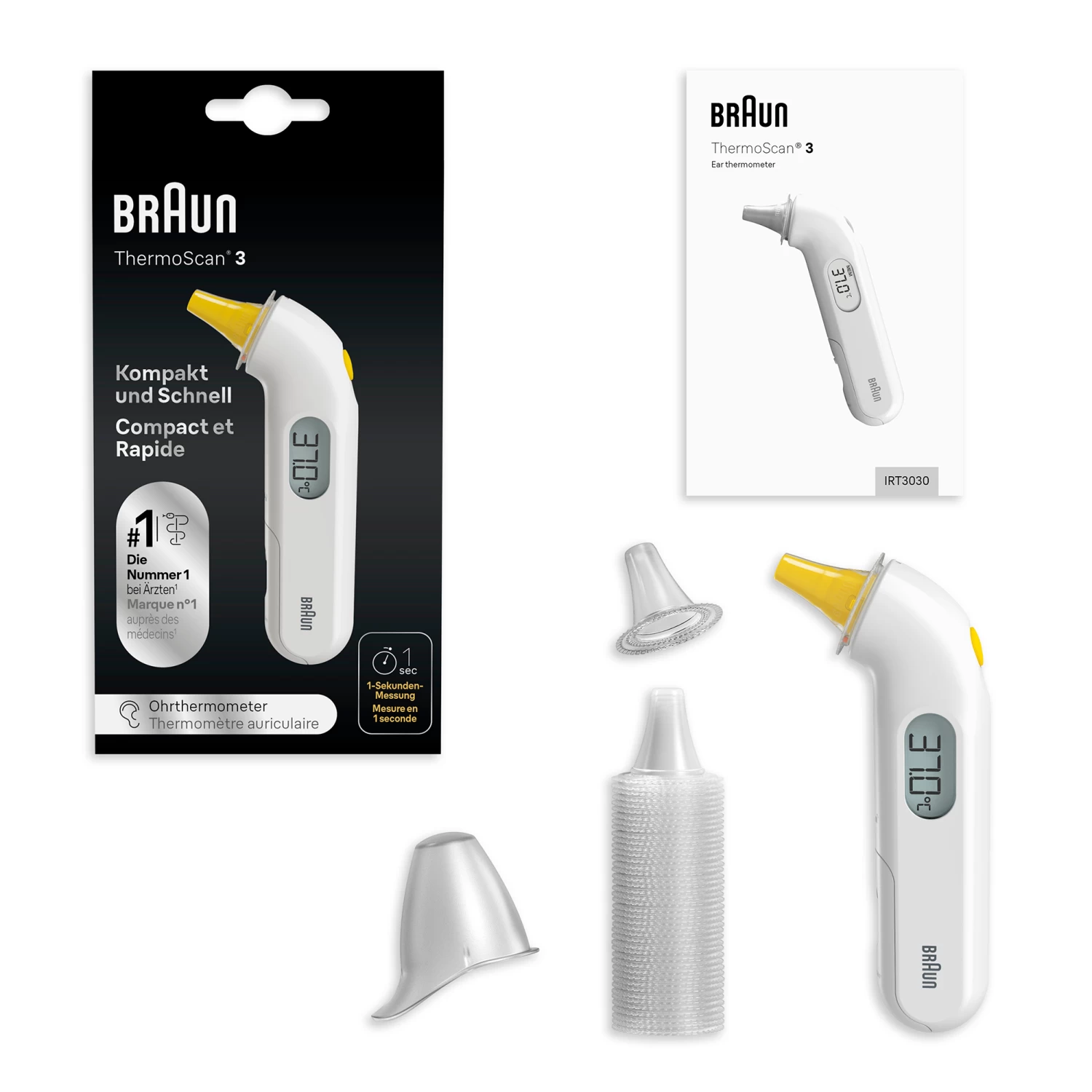 Grâce à sa conception compacte, le Braun ThermoScan® 3 est facile à utiliser, doux et rapide. Il prend des mesures en une seconde seulement et aide à interpréter la température avec son indicateur de fièvre audio. Braun ThermoScan® est la marque n°1 un auprès des médecins*.