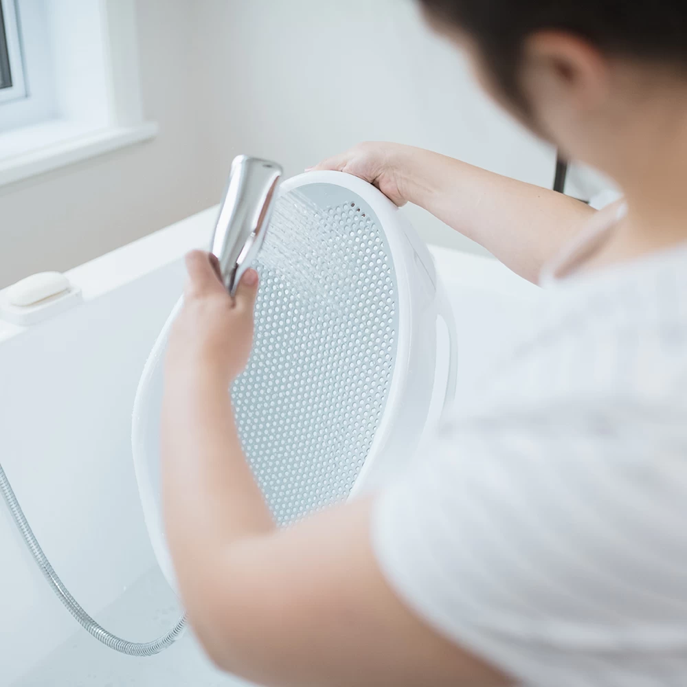 Astucieux, il se place directement dans la baignoire ou la douche. Son plastique perforé est ultra doux et permet de rincer bébé plus facilement .