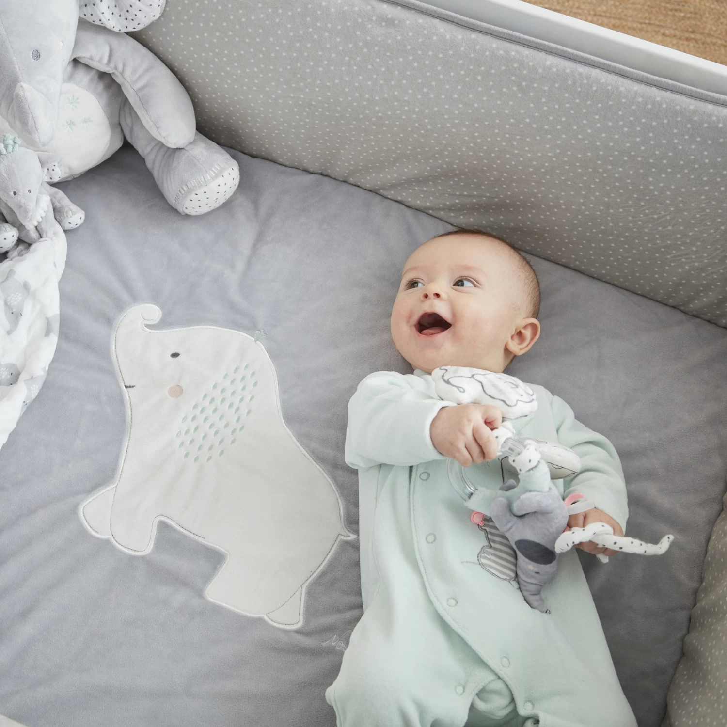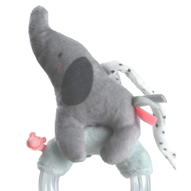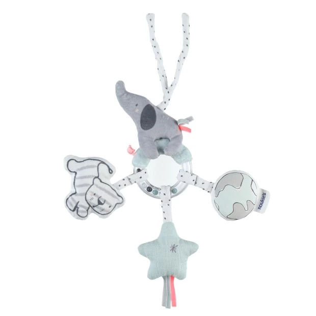 Ici, l’enfant est attiré par les couleurs pastelles, les motifs différents et les sons. En le manipulant, le bébé développe ses perceptions tactiles, visuelles et sonores.